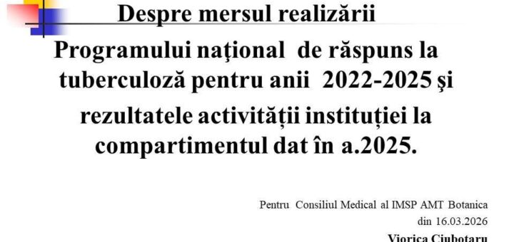 Ziua Mondială a tuberculozei 2026: „Da! Putem învinge TB!” La data de 16 martie 2026, în contextul marcării Zilei Mondiale a tuberculozei, a avut loc ședința Consiliului Medical cu tematica “Cu privire la realizarea...